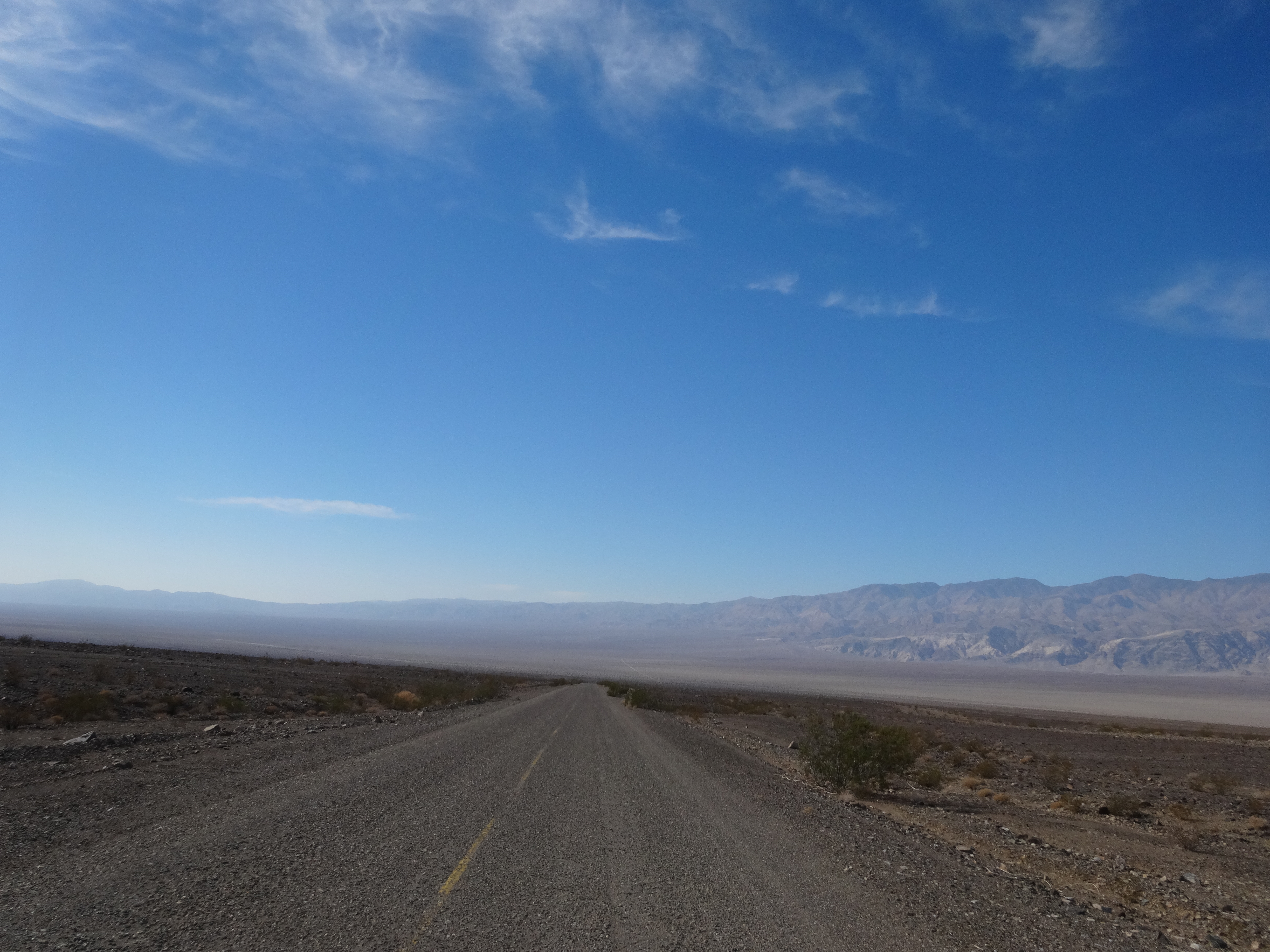 We cut down through Emigrant Canyon on Wildrose Road. I was shocked that the temperature had dropped almost 15 degrees as we gained elevation. We went through the road closed signs and made it no problem.