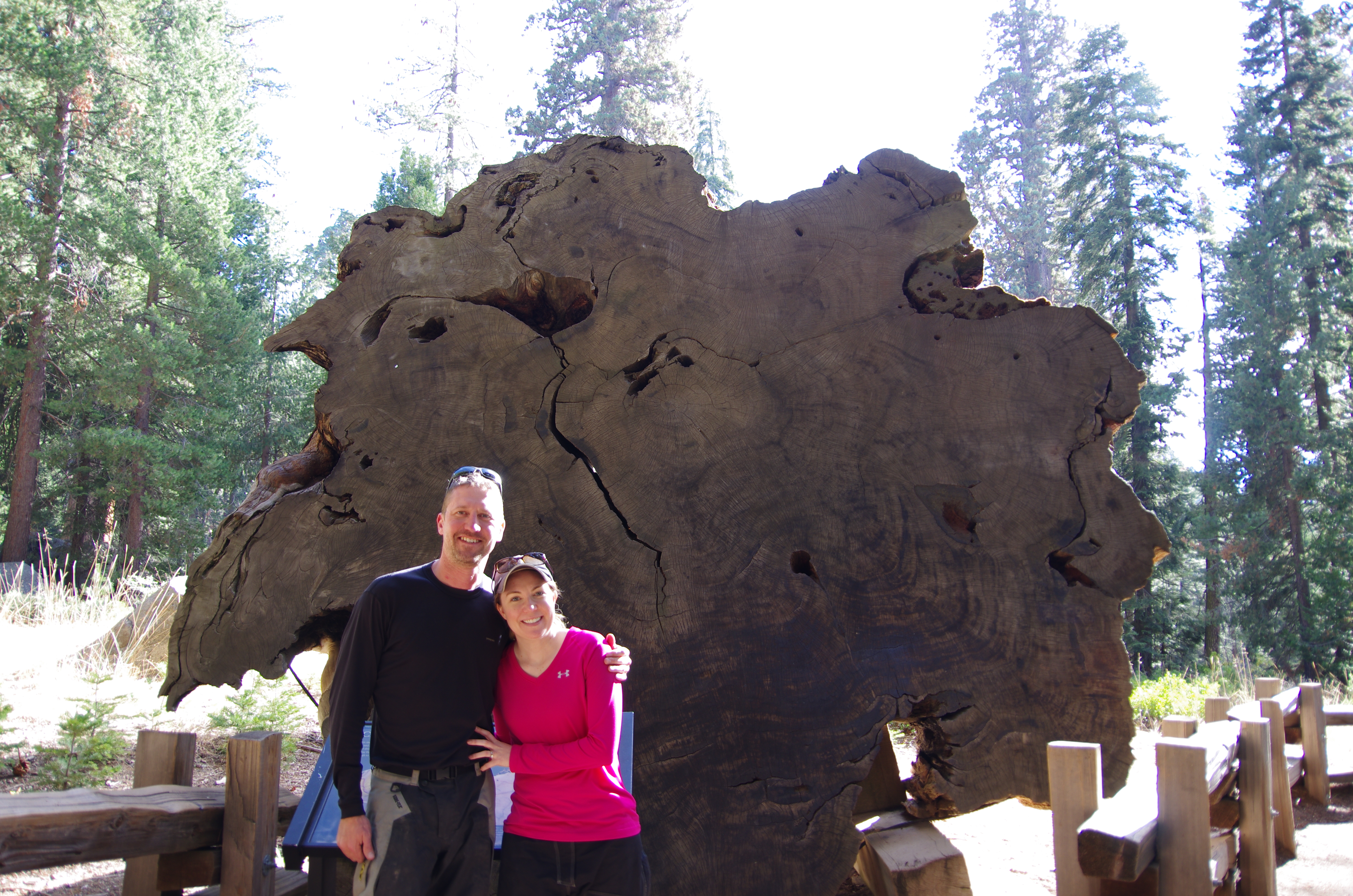 The temperature began to rise. We pulled over and shed some layers and decided to head to the General Sherman Tree. We set the GPS for the fastest time. The National Forest charged us $10 a person to enter the fee area. The road was under construction and ended up taking us 45 minutes longer than normal to reach the Tree. It would have been nice for the park ranger to have told us about the construction. When we got there we decided the Sherman Tree wasn’t worth the $20 admission fee. Galen and I spilt one of the beers he had in his pannier even if it wasn’t that prefect cold temperature.