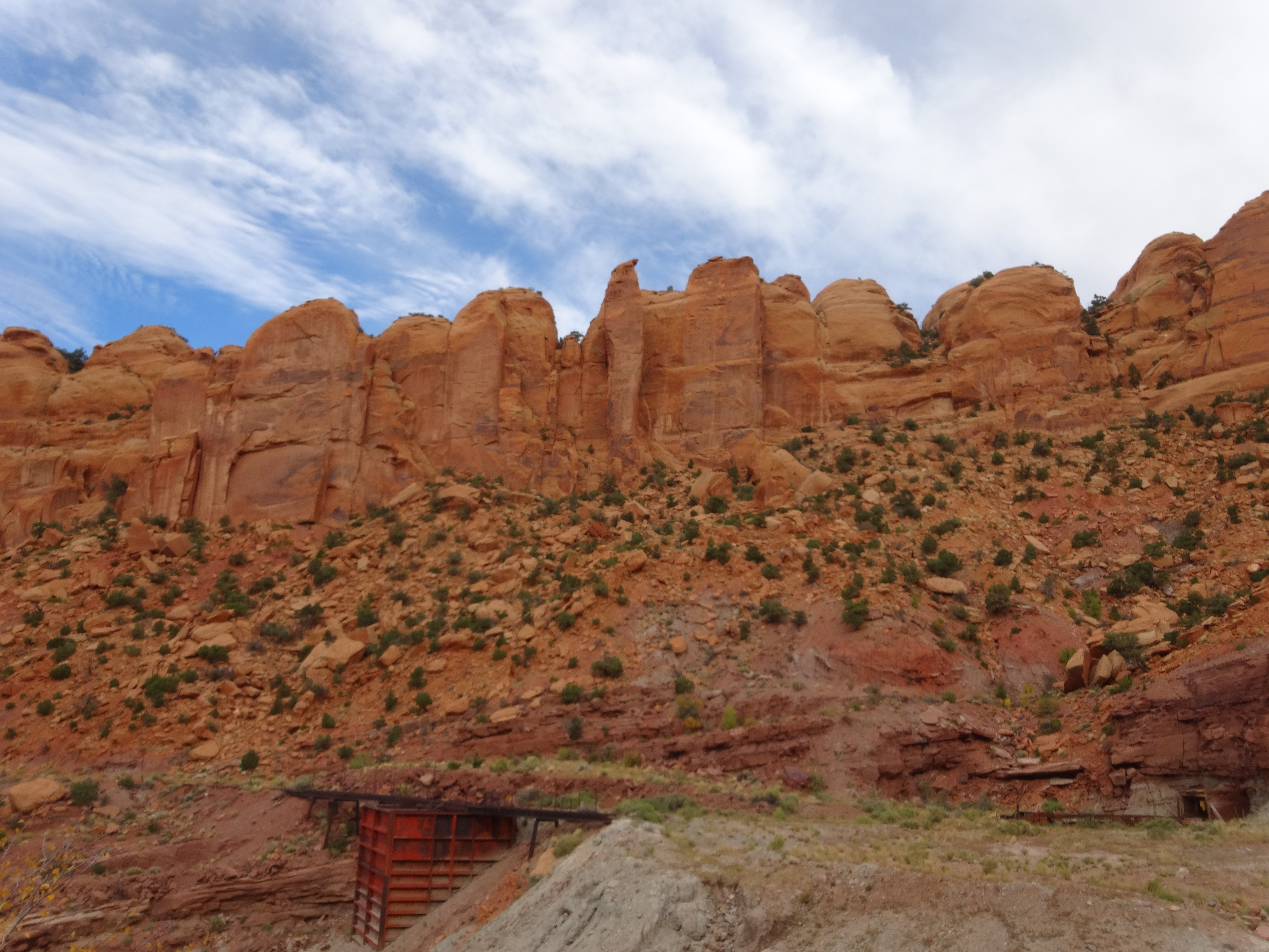Took a little longer to pack and get on the road because we warmed up by the fire with our coffee. We finally got on the road at 9:45am. After making our way through La Sal (fuel here looks a little sketchy, if you are a big bike fill up in Moab) we had a pretty aggressive downhill with loose rocks. The road was completely washed out. Super lose rocks. Front end was questionable at best. Galen was grateful he didn’t have to go up it with a fully loaded bike. We went by an old mine. I found it very odd that their gas lines are run above ground.