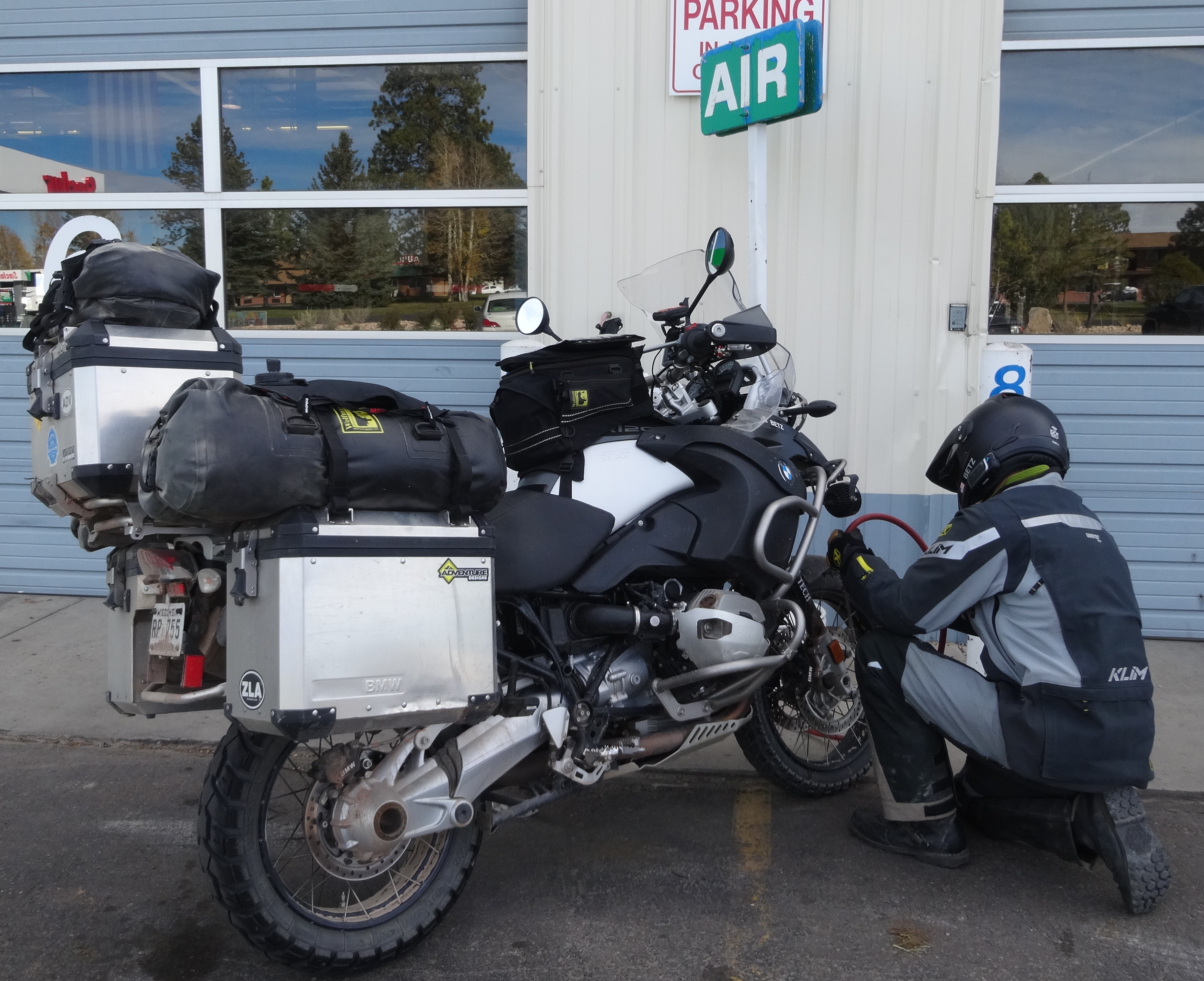 We enjoyed a quick continental breakfast, loaded up the bike and we headed back to Bryce Canyon. We stopped in Bryce Canyon City to air up the tires. Turns out we are going to be on blacktop most of the day. Some gas stations you go to they have a crazy air hose. This tire gauge from Adventure Designs is great for any hose and you can fill and check pressure with one gadget.
